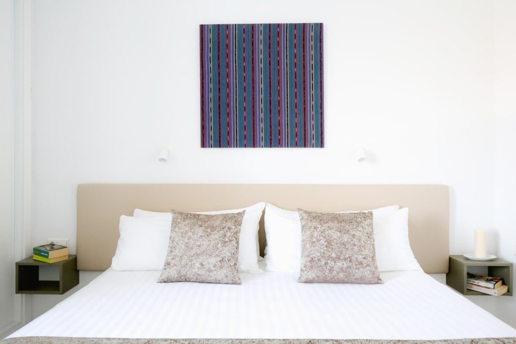 Our One-bedroom elegant apartment suites are comfortably designed for two or a family traveling with children. These spacious 44 m² apartments have a choice of a double or twin bed. Moreover, it…includes a cozy living room with a fully equipped kitchen, bathroom with a stand-up shower, private outdoor living space. And a sound of ocean waves.